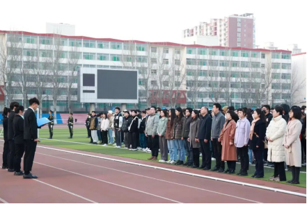 迎着春日的暖阳,感受着青春的温度,国旗班队员们身着统一服装,迈着坚定的步伐,以最饱满的热情、最昂扬的气势,守护着国旗走向国旗台。随着激昂嘹亮的《义勇军进行曲》响起,鲜艳的五星红旗在空中展开,冉冉升起。全体师生向五星红旗行注目礼,齐唱国歌,向祖国致以最崇高的敬意。