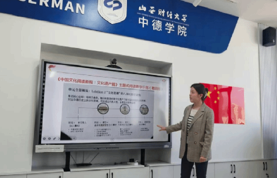 主旨报告环节,浙江大学李媛教授围绕“立足本土·融通中外”主题,详细阐述了“德语金课”系列教材的设计理念、学理根基与创新路径,结合具体案例展示了教材如何支撑中国德语教育自主知识体系构建,为参会教师提供了宝贵的教学与教材建设思路。圆桌论坛上,来自中山大学、同济大学、北京外国语大学等高校的专家学者,围绕德语专业学科定位、课程体系改革、人才培养模式创新及AI技术应用等议题展开深入研讨,分享了各校的实践经验与探索方向。北京外国语大学葛囡囡副教授结合其编著的教材《中国文化阅读教程:文化遗产篇》,做了题为“推动文明互鉴,赋能遗产叙事:主题式阅读教学示范”的示范课,展示了如何在教学中实现文化遗产与外语教育的深度融合。