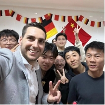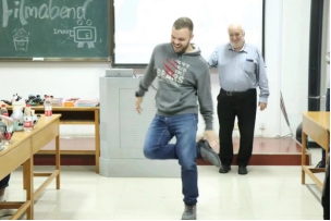 随后,Eigenstetter教授邀请四名在场观众观看德国狂欢节的一个舞蹈片段,进行了一场激烈的舞蹈比拼。Maximilian Schnadt助教也热情地参与其中,欢快的音乐和有趣的舞蹈把活动氛围推向高潮。