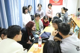最后,教授、德语老师和同学们围坐一圈,一起交流对话,在了解德国风土文化的同时锻炼口语能力。大家互相畅聊,Angelika Irene Rösch教授那儿吸引了许多同学激烈讨论,好不热闹!活动在欢声笑语中落下帷幕......