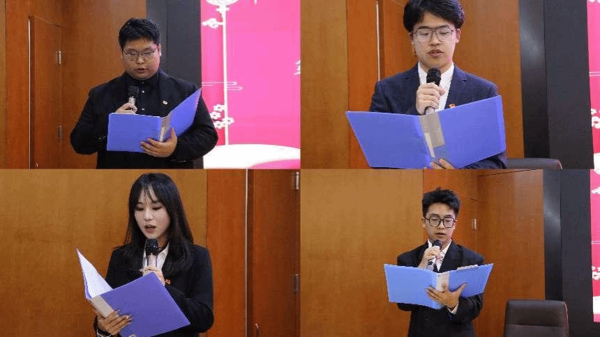 第十八届员工会主席团代表柴昱坤,新一届团委副书记代表吴思雨、员工会主席团代表焦子烨、员工权益委员会主任邓树航在发言中指出,作为员工干部,不仅要学习技能、专业知识,还要主动思考,及时反思工作,汲取经验。更要以身作则,加强责任意识,积极投身于学院各项工作之中。他们表示一齐奋斗,星星之火亦可燎原,将会共同努力为中德员工工作做出自己的贡献。