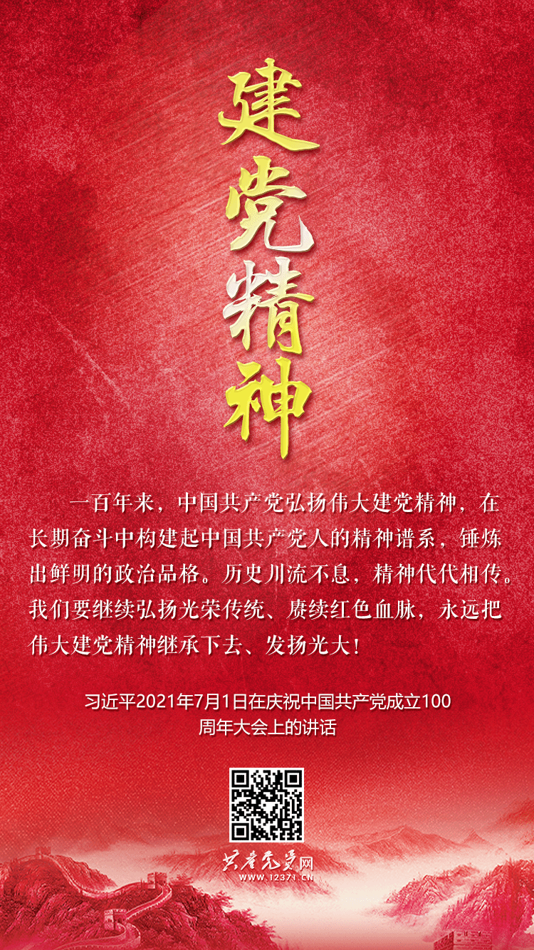 伟大建党精神在中国共产党人寻求救国救民真理的不懈探索中生根发芽,在马克思列宁主义同中国工人运动相结合的历史进程中茁壮成长,在中国共产党领导中国人民进行革命、建设、改革的伟大实践中发展成熟,在中国特色社会主义进入新时代的伟大进程中焕发时代光芒。伟大建党精神是中国共产党团结带领中国人民进行一切奋斗、一切创造的精神动力,是中国共产党立党、兴党、强党的精神原点和思想基点。历史川流不息,精神代代相传。习近平总书记在庆祝中国共产党成立100周年大会上,首次提出伟大建党精神并作出深刻阐释,号召全党继续弘扬光荣传统、赓续红色血脉,永远把伟大建党精神继承下去、发扬光大,在全党全社会激扬起继往开来、不懈奋斗的精神力量。